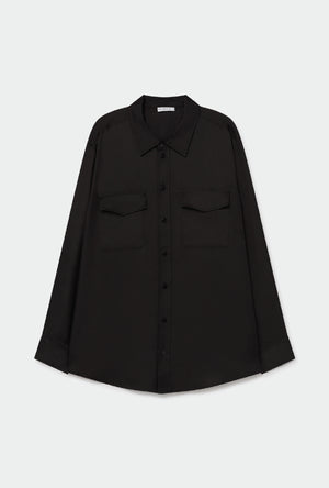 COTTON SILK ROUND SHIRT BLACK